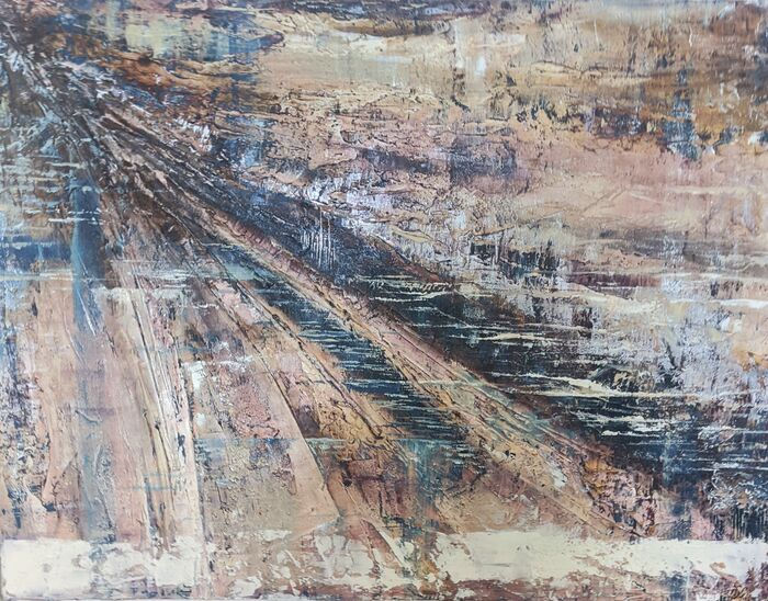 This Heavily textured piece reflects conflicting emotions and crossroads in life with different paths to choose to go forward.