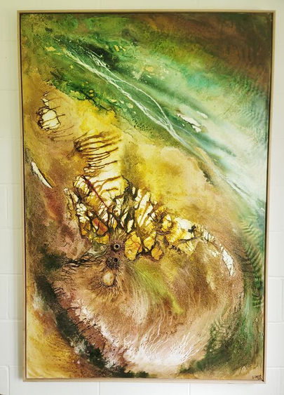 I created this piece during Hurricane Alfred whilst being flooded in for a week with no power. Painting this helped me immensly by transmuting my feelings onto the canvas. It is wet wild and swampy with a few real wooden bits imbedded into it to create an eyecatching detail.